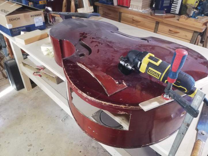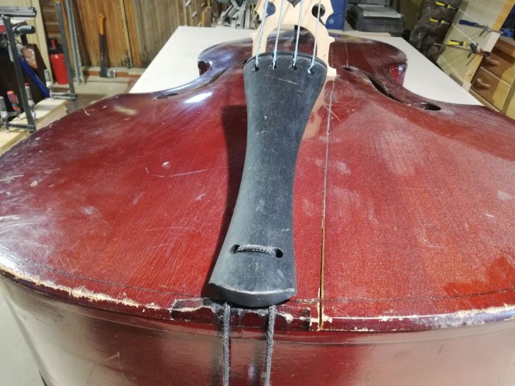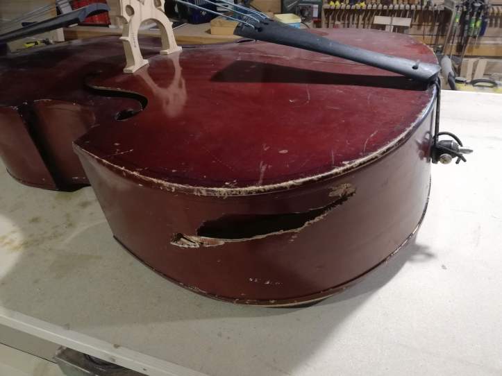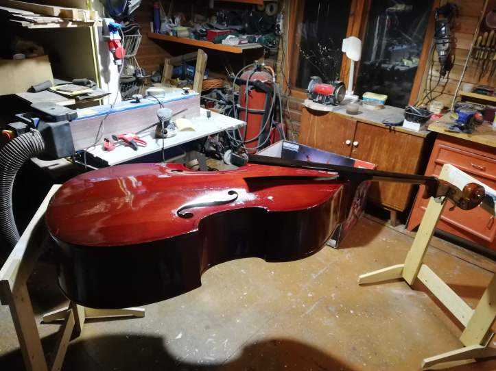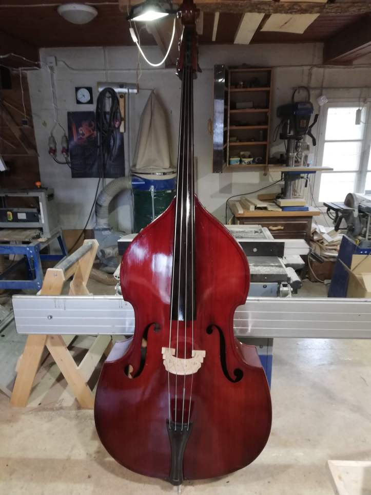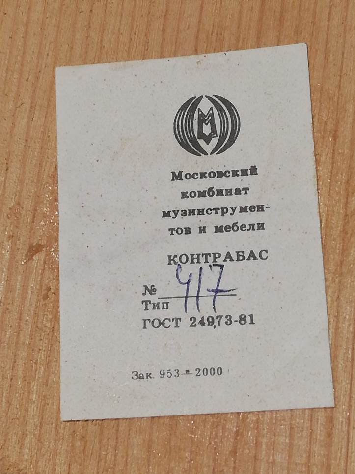 Kontrabass on viiulite perekonnast. Tõsi, siin on suguluse vaidlusi, kes on esiisa ja siiski lähim sugulane. Teatavasti on kana lähim elusolev dinosauruse sugulane ja selle teadmine ei sega kuidagi muna keetmist. Viiuli sugulast oli kõvasti mängitud ja ka “sisse astutud”. Mõned kontrabassistid olid oma nimed sisse graveerinud (jätsin alles, ikkagi pilli ajalugu). Tehtud tema oli Moskva “Muusikainstrumentide ja mööbli tehases”. Minu juurest läbi käinud kontrabassidest üks paremaid, kuigi tagakaan oli kuusest, vahtra asemel, tehtud.
