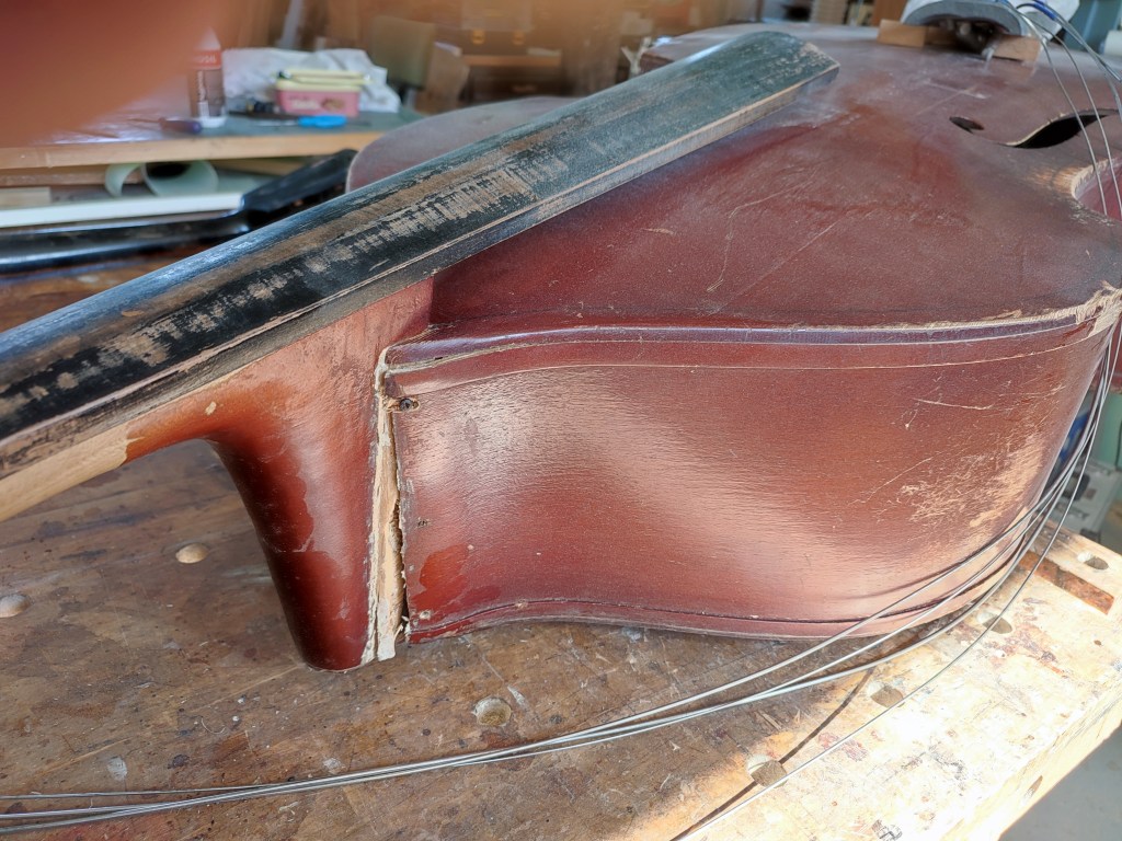 Kontrabass oli sündinud traumaga, mis lõi välja pikema kasutuse käigus. Tehas oli nõuka ajale kohaselt teinud kaela tapi nii puudulikult, et see oma ülesannet ei täitnud ja kaelake murdus küljest lahti.