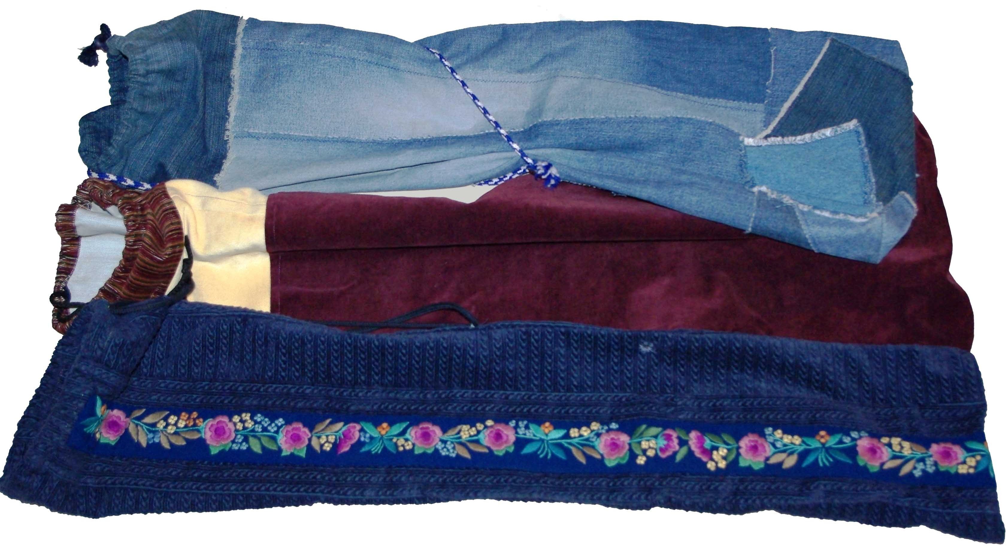 Ise võib õmmelda kahekordsest riidest nööriga õlale võetava torukoti.
